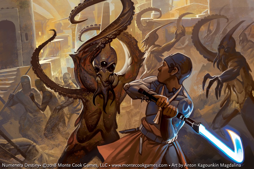 The numbers and resources are present in Numenera’s core rulebooks to build out an excellent fighter or warrior, but when it comes to building your Glaive, taking advantage of the inherent narrative core at the center of these rules is essential for an engaging Numenera experience.