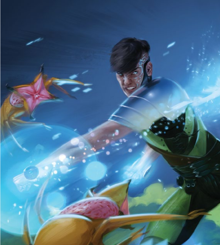 For their focus, we might take inspiration from Elithal’s father’s dying words, that of protecting the village. “Shepherds the Community” is an excellent consideration here, as could “Defends the Weak.” Perhaps their encounter with the Disassembler taught them the importance not merely of strength, but also being precise and intentional in combat, and so a focus like “Wields Power With Precision” could work. At the same time, perhaps Elithal’s background of living in the Ba-Adenu Forest is most notable, and so they might be a Glaive who simple “Lives in the Wilderness.”